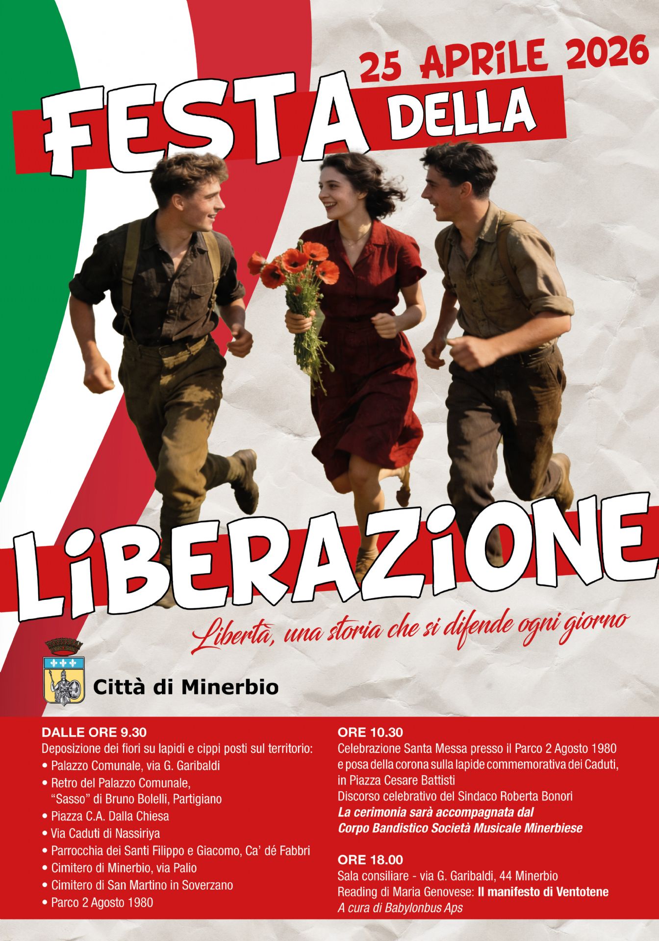 Il Comune di Minerbio è lieto di invitarvi a due importanti eventi per commemorare l'81° anniversario della Liberazione dell'Italia dal nazifascismo sabato 25 aprile.