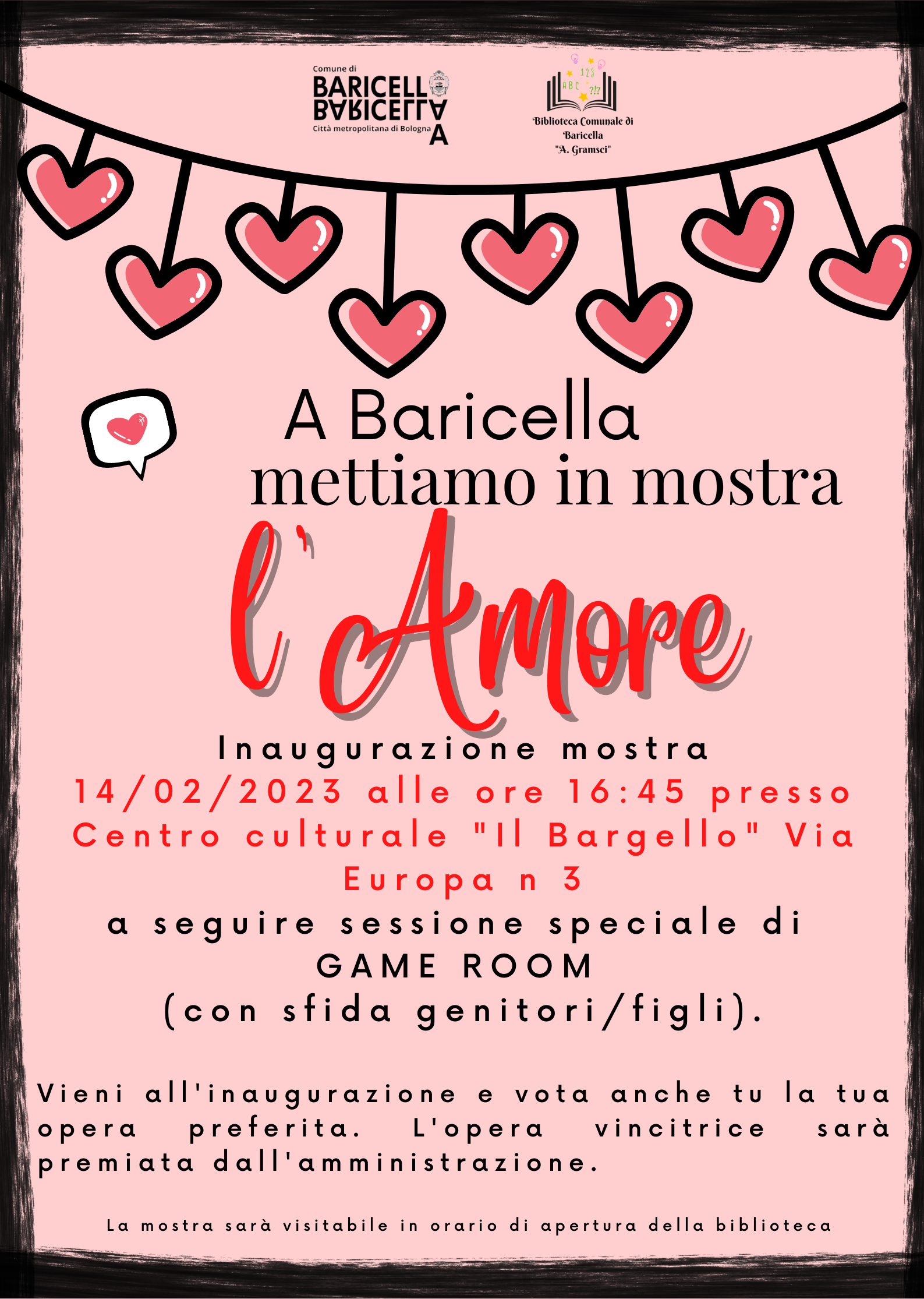 L'inaugurazione della mostra avverrà martedì 14 febbraio 2023 alle ore 16:45 presso la Galleria Magnanini del Centro Culturale il Bargello (via Europa 3, Baricella).