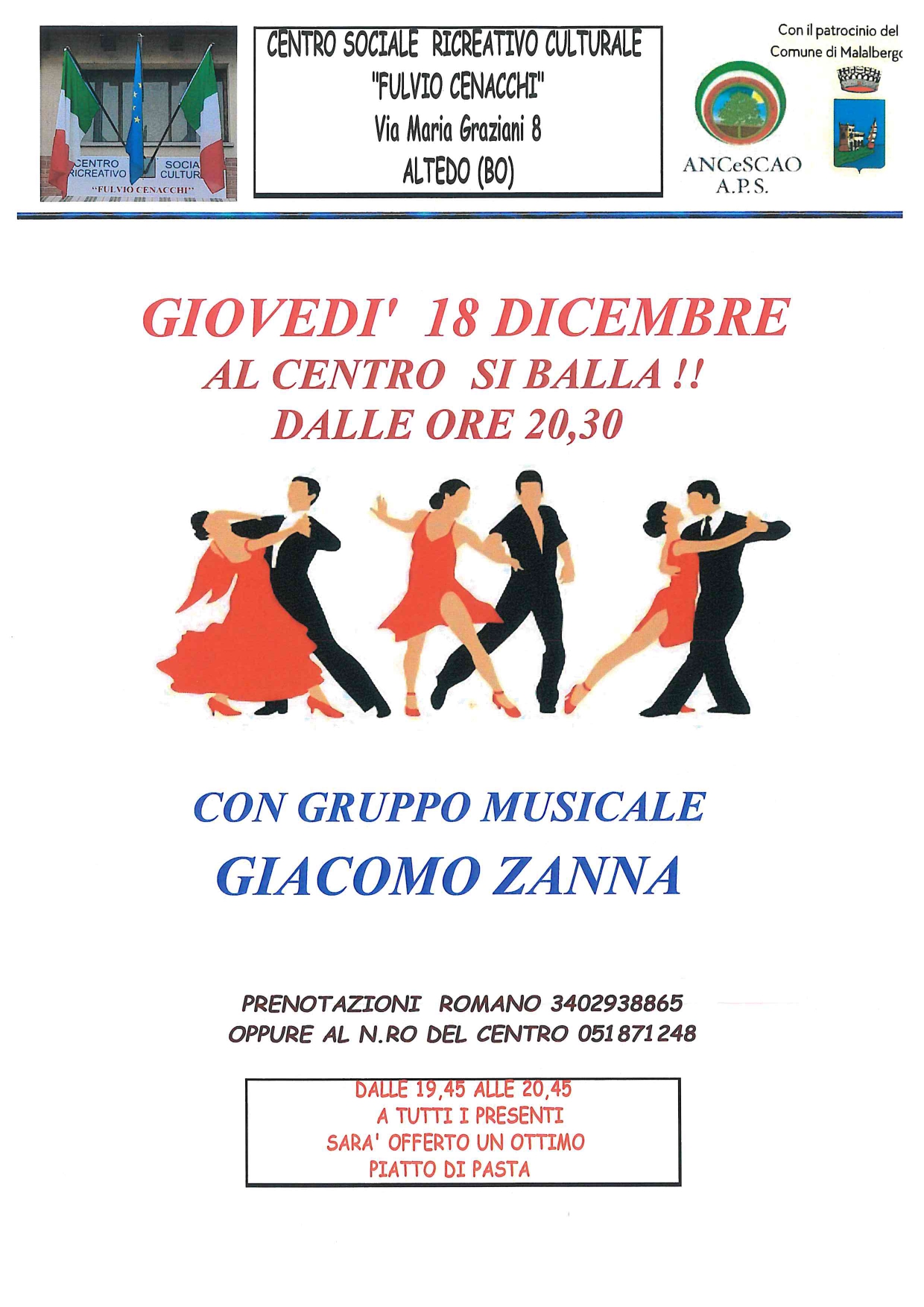 Serata danzante con il Gruppo Musicale Giacomo Zanna.