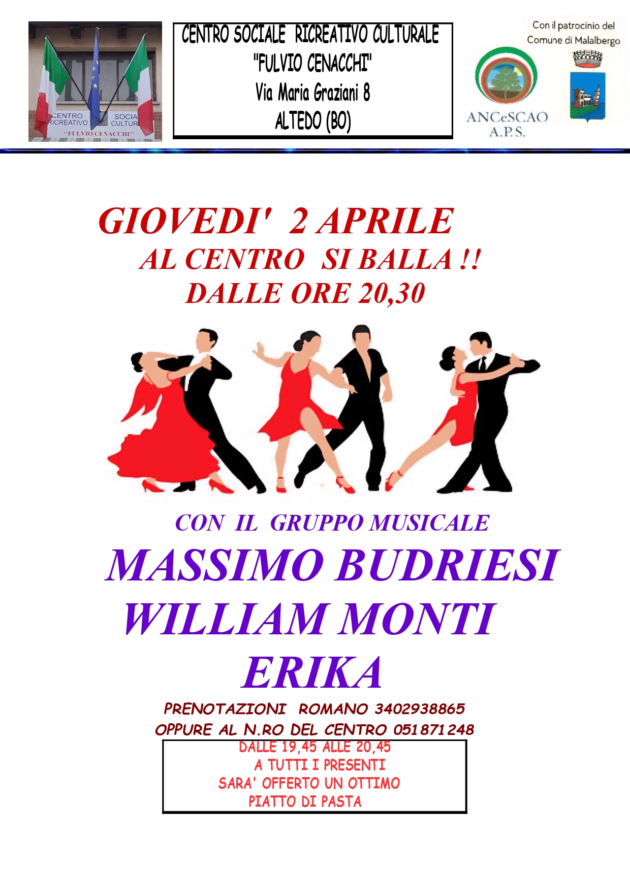 Al Centro si balla! Serata danzante con il Gruppo Musicale Massimo Budresi, William Monti e Erika.