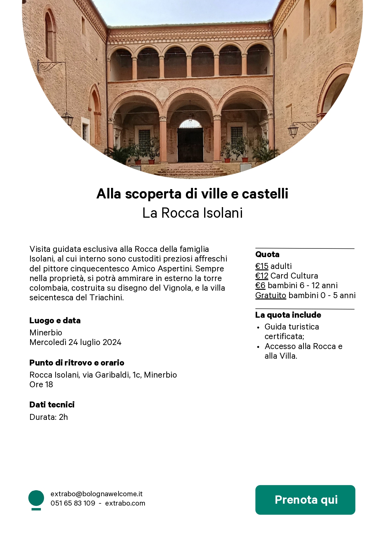Mercoledì 24 luglio 2024 alle ore 18.00 visita guidata a di Rocca Isolani, via G. Garibaldi, 1/c a Minerbio, organizzata da eXtraBO.