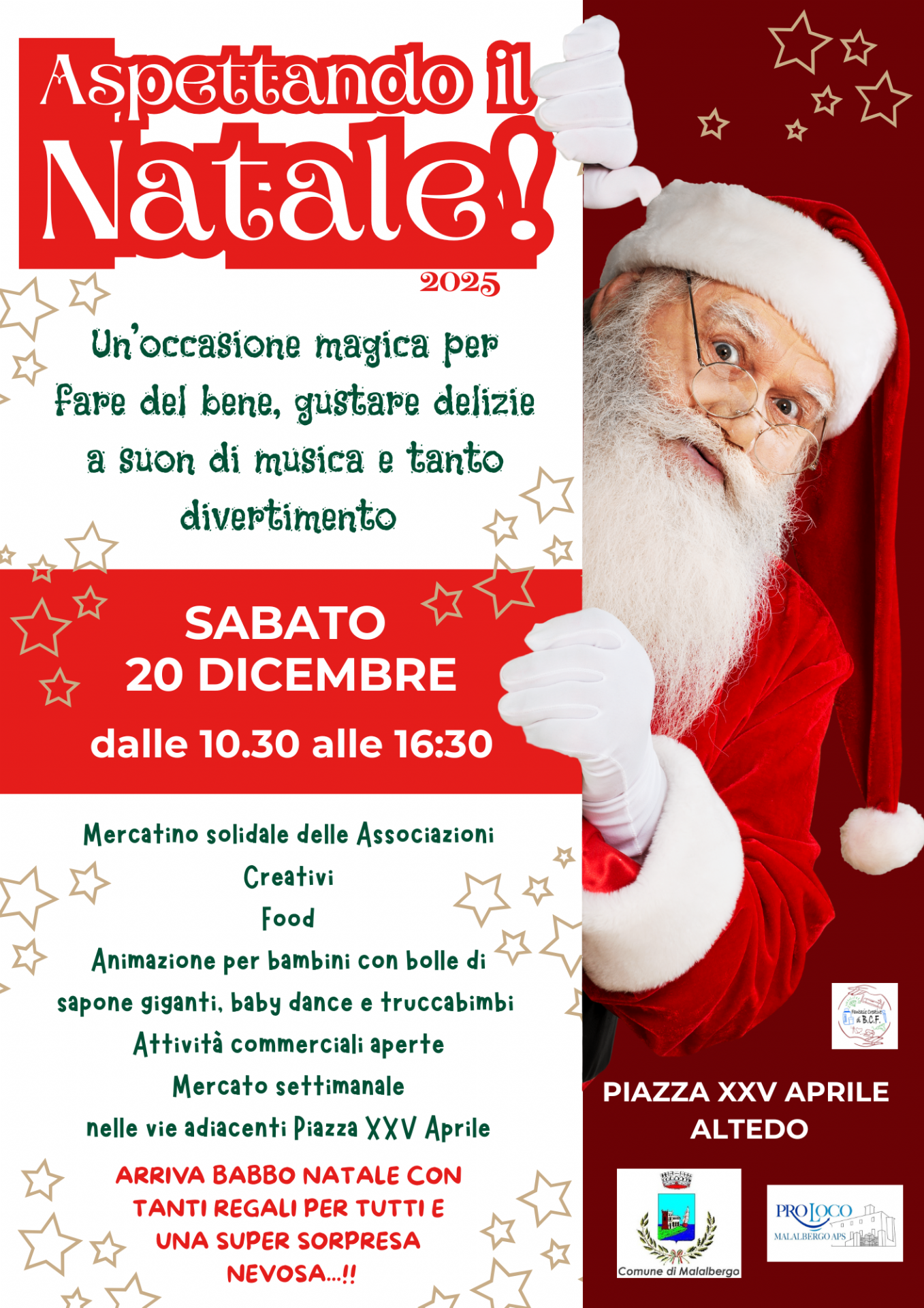 Arriva Babbo Natale con tanti regali per tutti e una super sorpresa nevosa