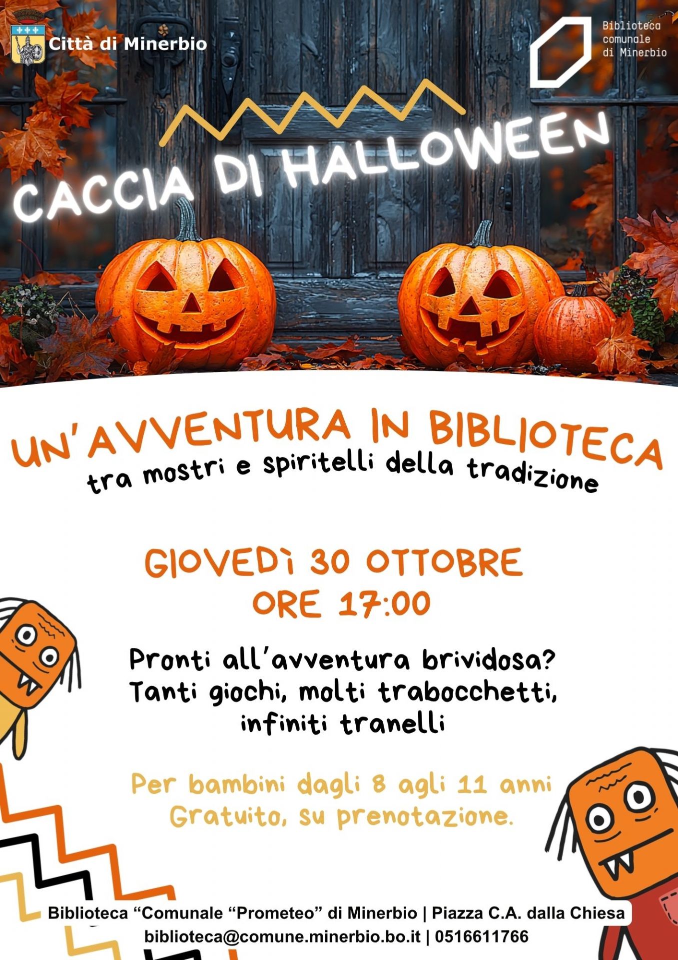 Arriva la Caccia di Halloween! Giovedì 30 ottobre alle ore 17:00, la Biblioteca Comunale "Prometeo" di Minerbio, in Piazza C. A. dalla Chiesa, ospiterà un evento da brividi: una vera e propria caccia tra gli scaffali, tra mostri, spiritelli e tranelli della tradizione!
