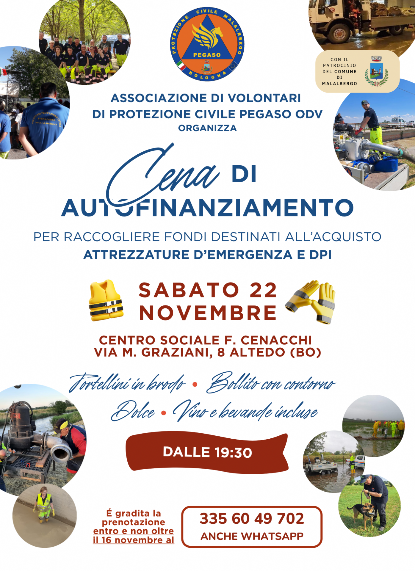 Cena di autofinanziamento dell'Associazione di Volontari Protezione Civile Pegaso presso il Centro Sociale Ricreativo Culturale "Fulvio Cenacchi"