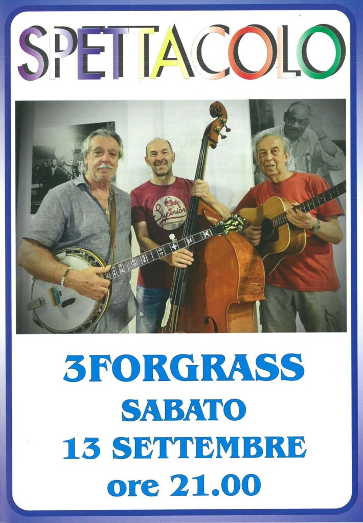 alle 21.00 spettacolo musicale dei 3FORGRASS