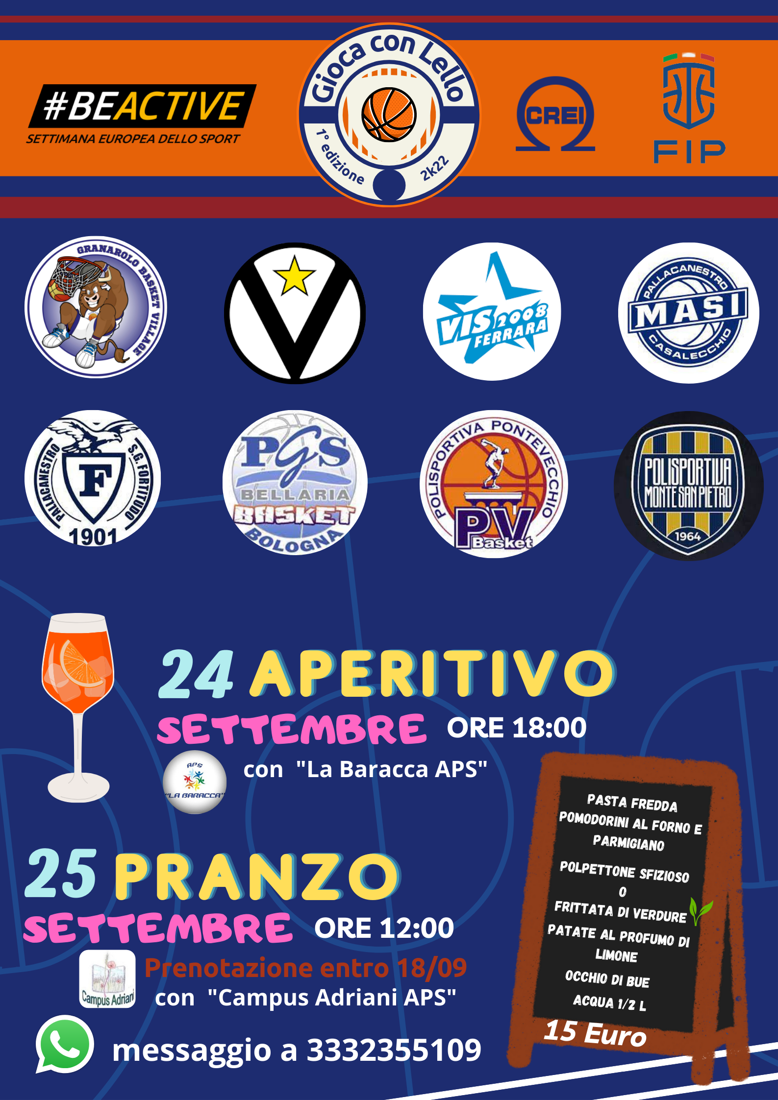 "Gioca con Lello" è la prima edizione di un torneo di pallacanestro per under 14 in memoria del nostro giovane atleta Marco Lelli Ricci, scomparso lo scorso aprile. L'iniziativa, organizzata da Granarolo Basket in collaborazione con Campus Adriani e La Baracca Aps, coinvolgerà tante squadre di Bologna e dintorni in una manifestazione all'insegna dello sport e del divertimento.