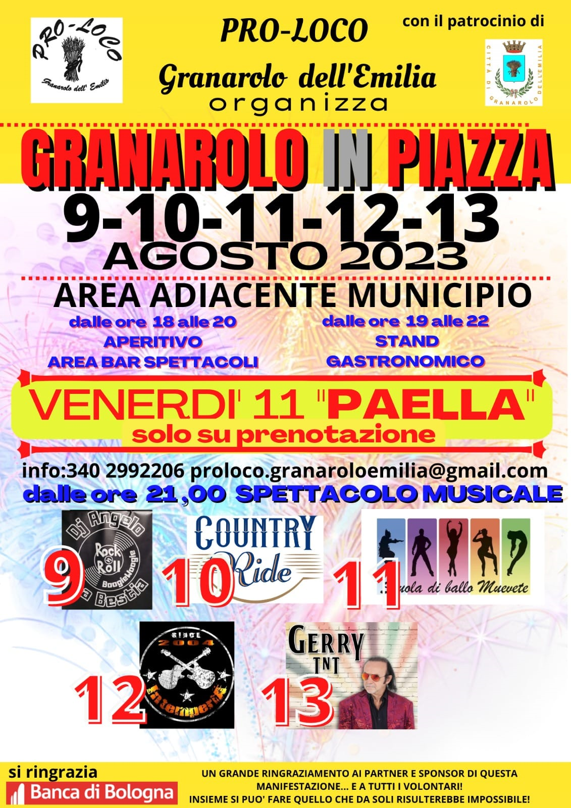 Per informazioni e prenotazioni 340-2992206 proloco.granaroloemilia@gmail.com