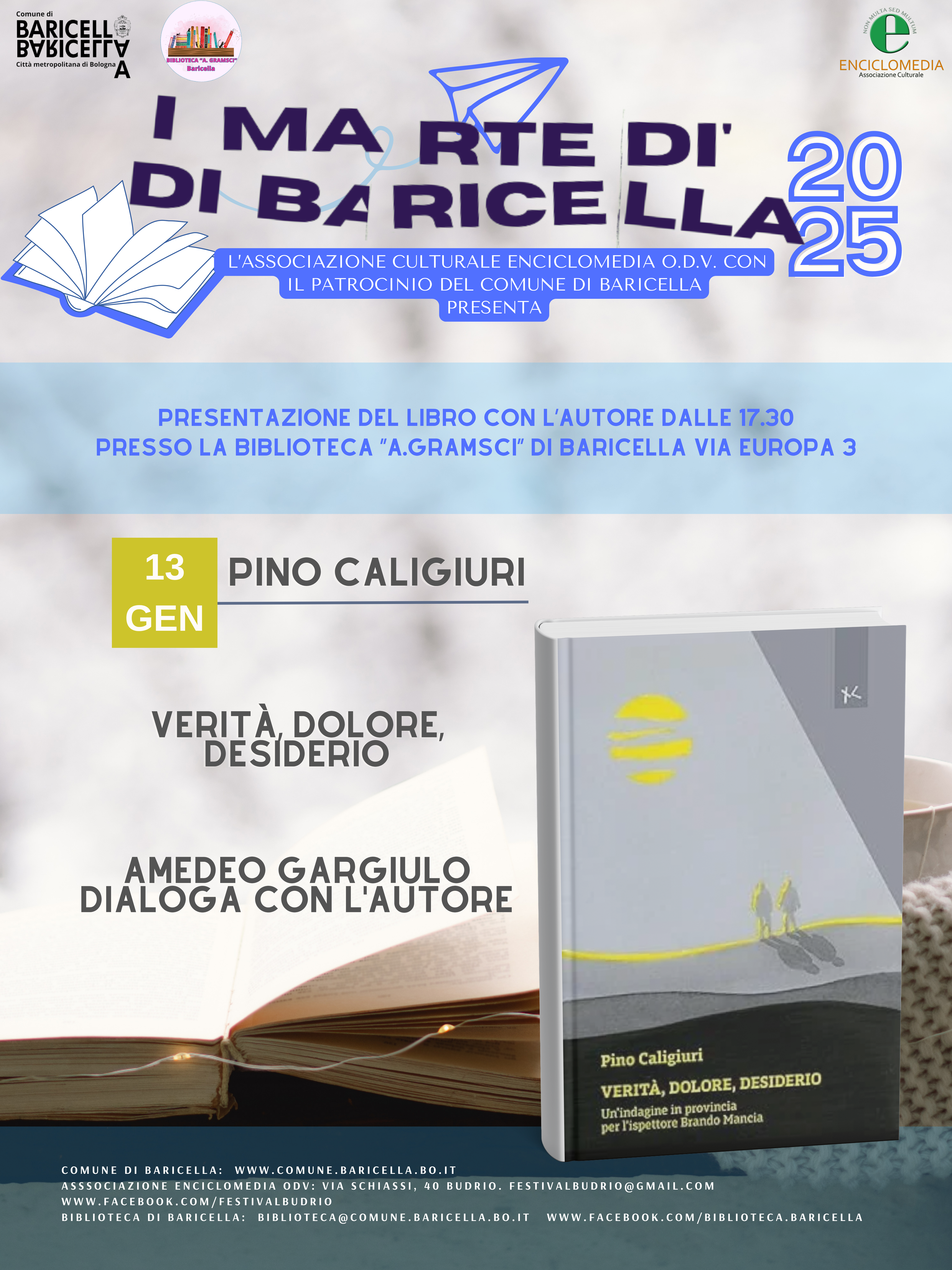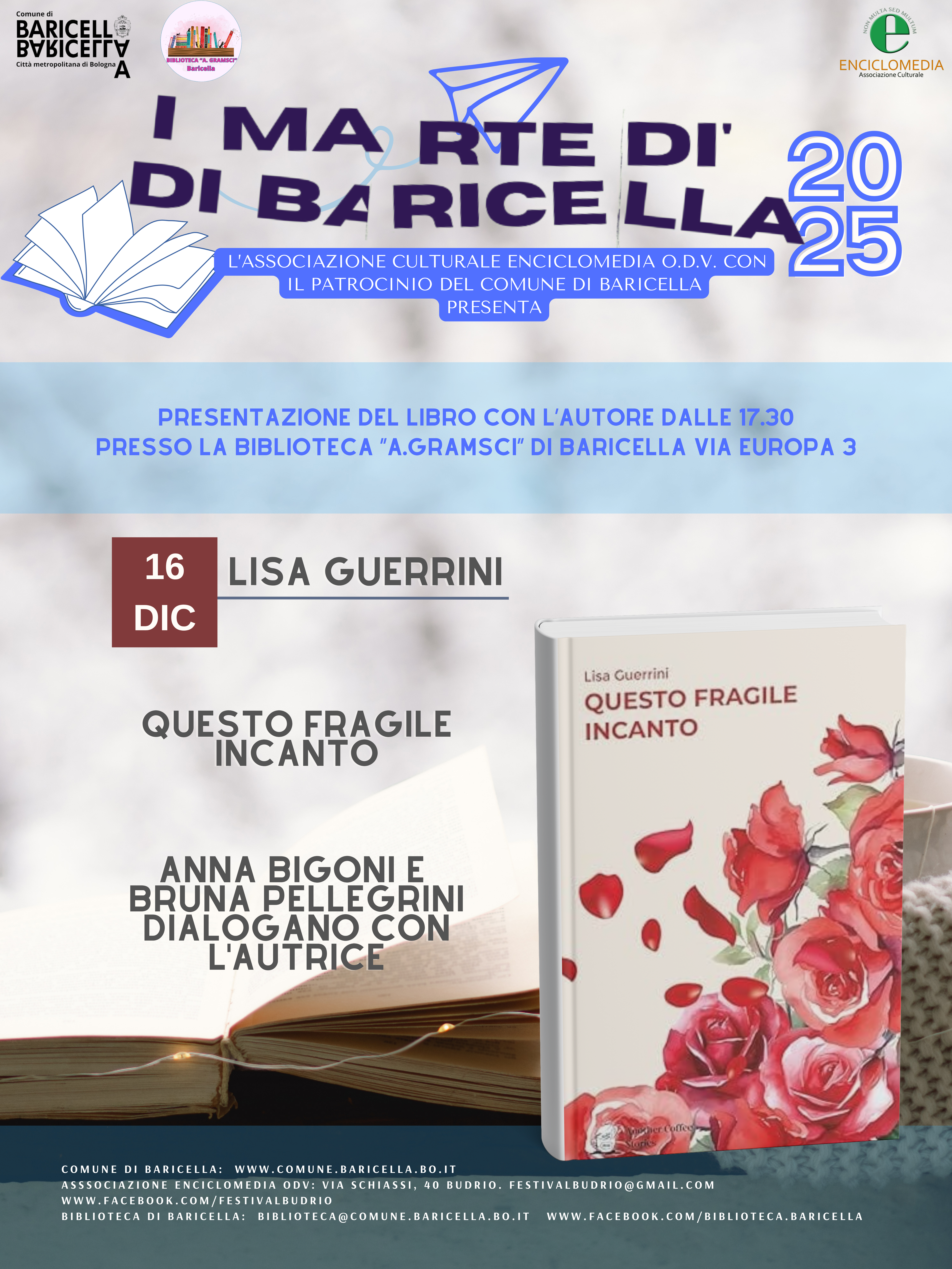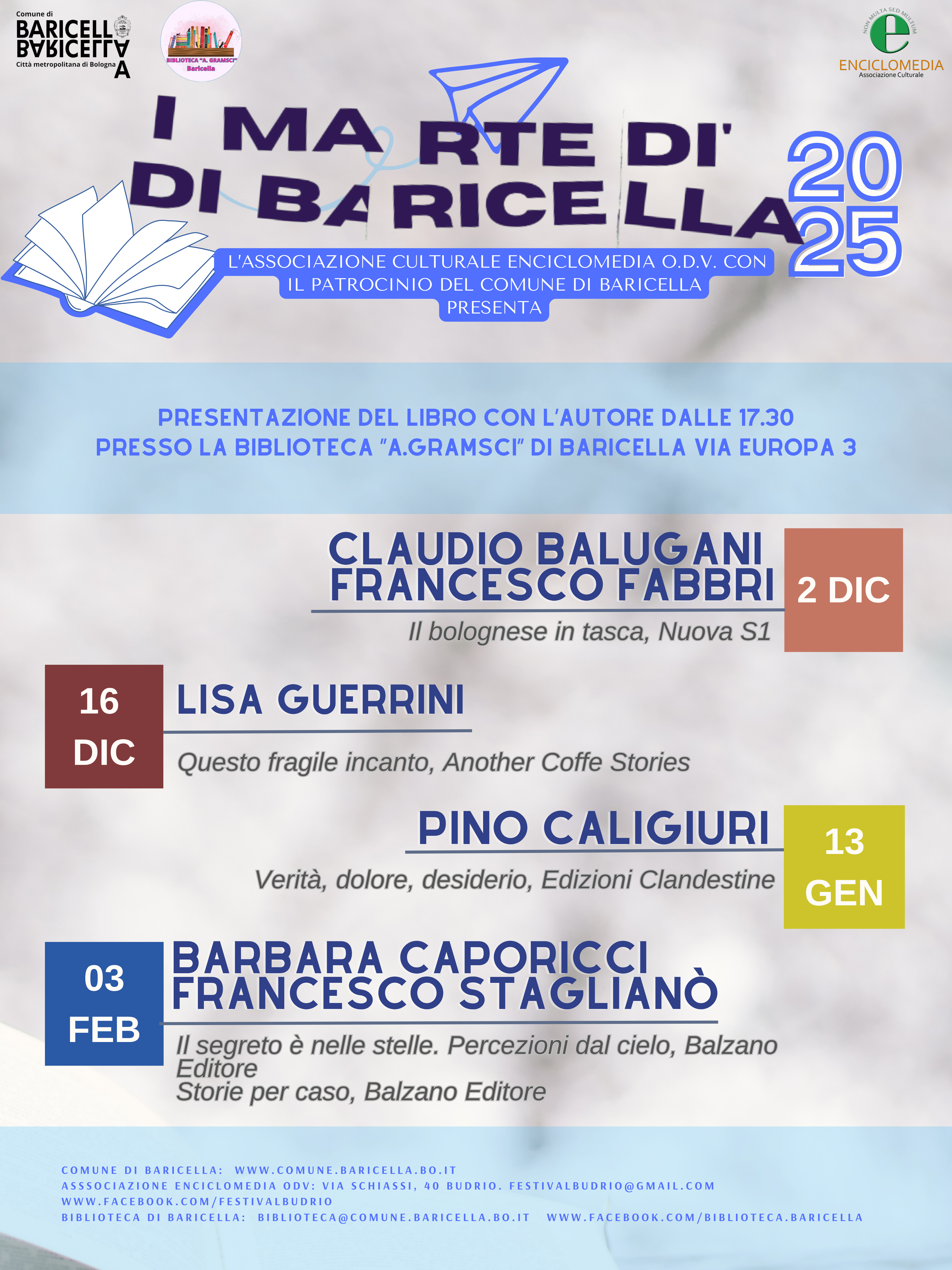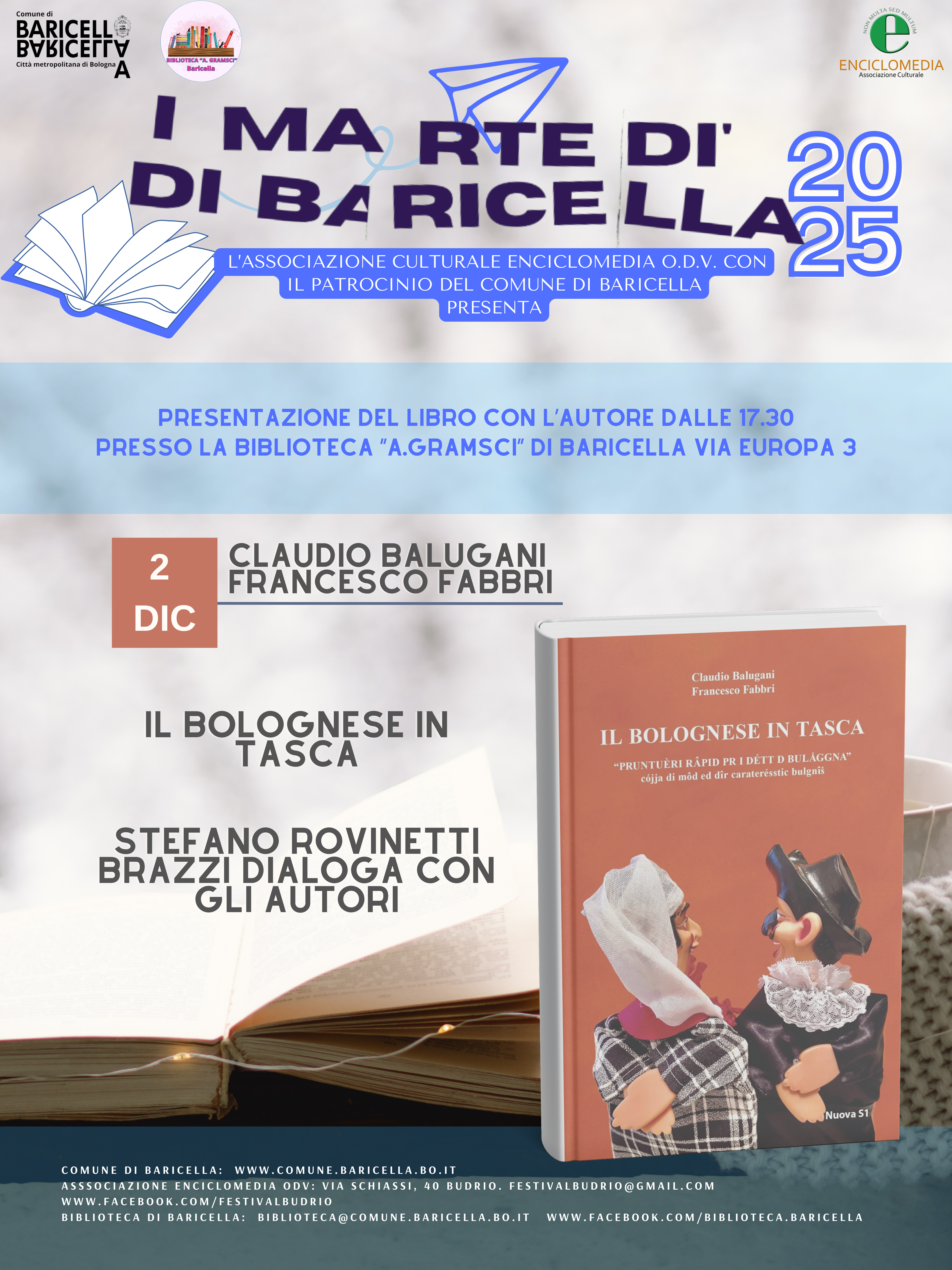 L’iniziativa, promossa e curata dall’Associazione Culturale Enciclomedia ODV con il patrocinio del Comune di Baricella, prosegue il percorso avviato nel 2020 di valorizzazione e diffusione della cultura sul territorio.