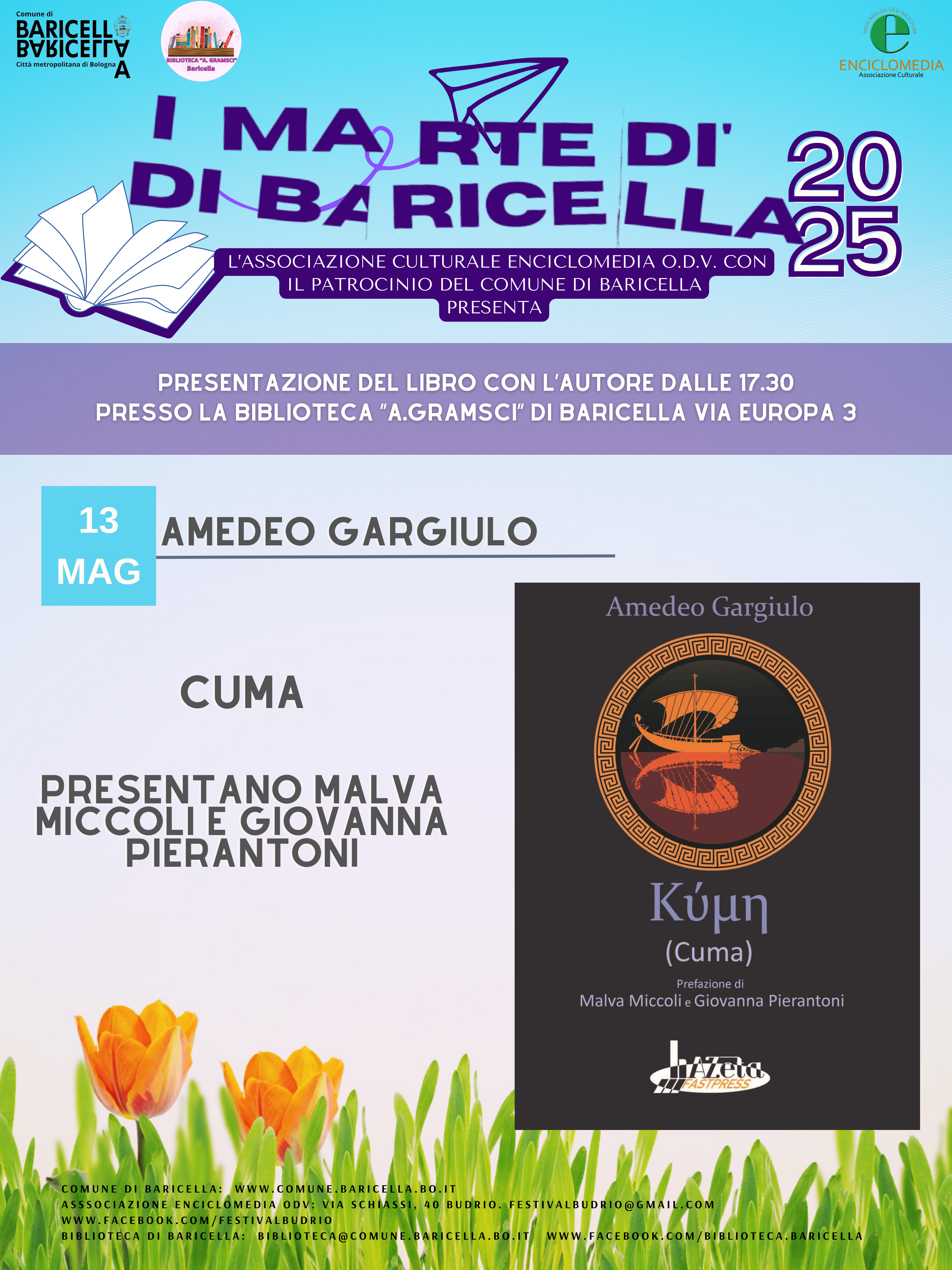- 13 maggio: Amedeo Gargiulo, Cuma, Azeta Fastpress. Presentano Malva Miccoli e Giovanna Pierantoni. Nel corso della serata ci saranno le premiazioni dei vincitori della sezione poesia della III Edizione del concorso "A Baricella mettiamo in mostra l'Amore"