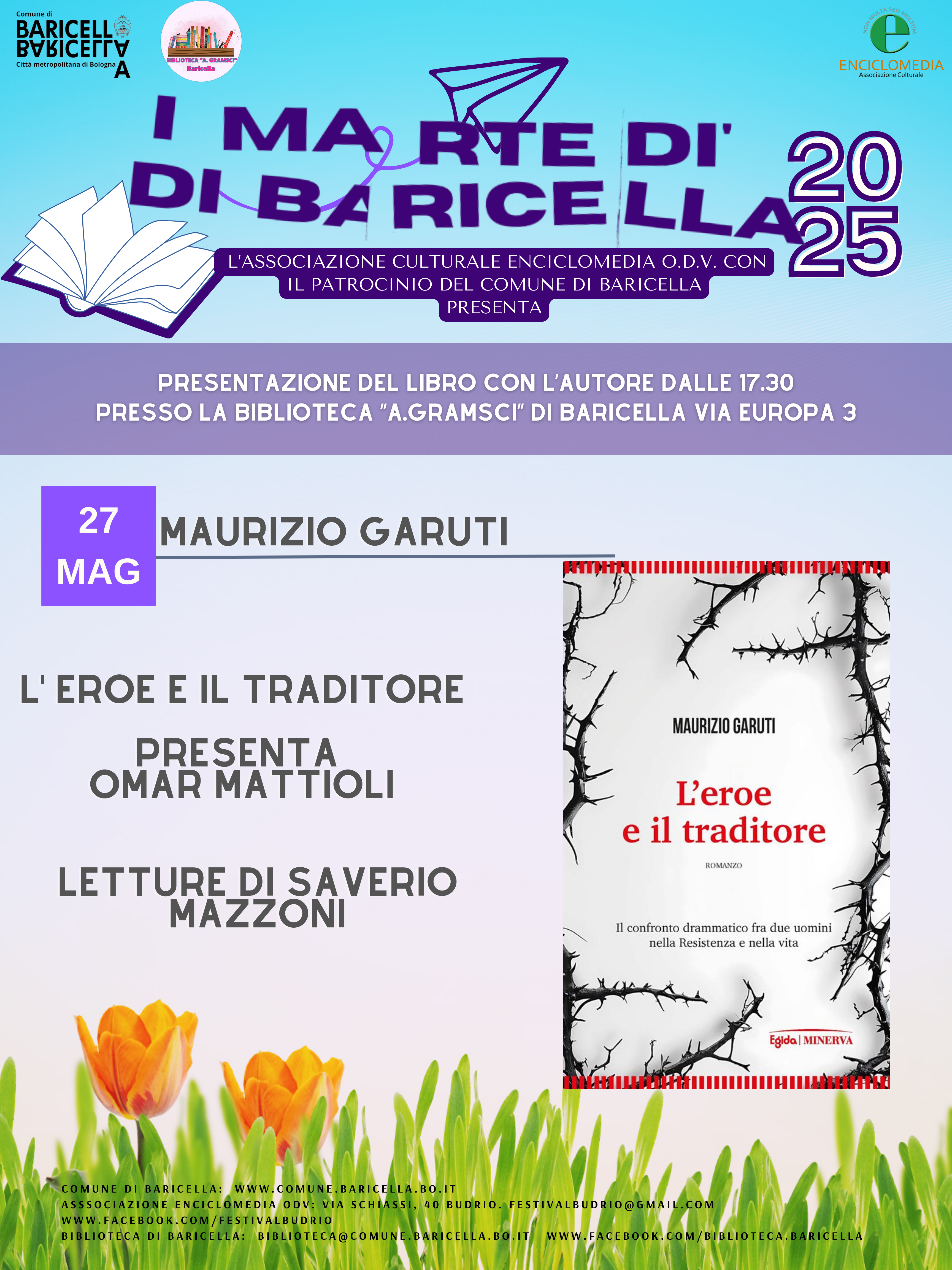 - 27 maggio: Maurizio Garuti, L' eroe e il traditore, Minerva. Letture di Saverio Mazzoni. Presenta Omar Mattioli