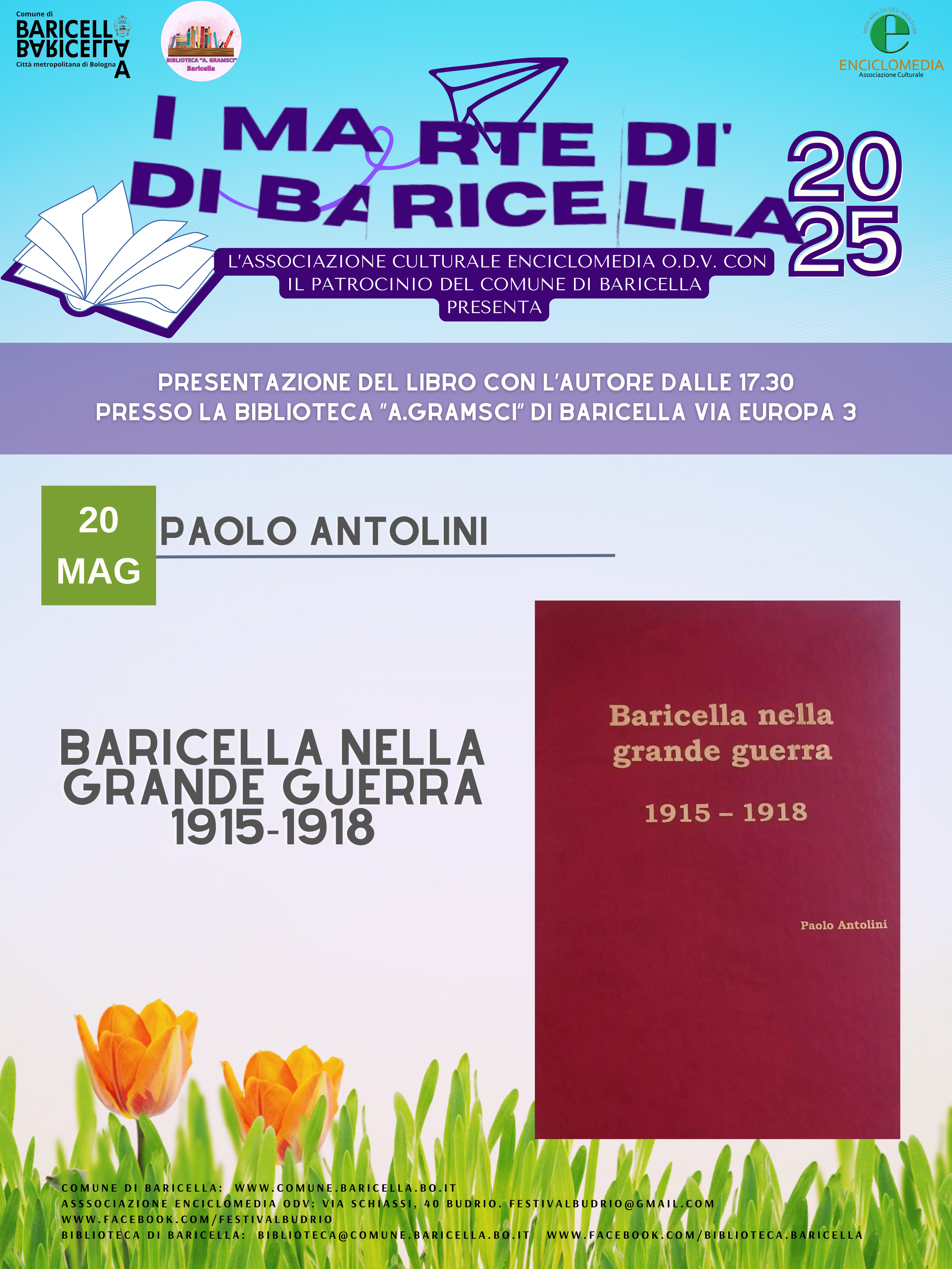 - 20 maggio: Paolo Antolini, Baricella nella grande guerra 1915-1918.
