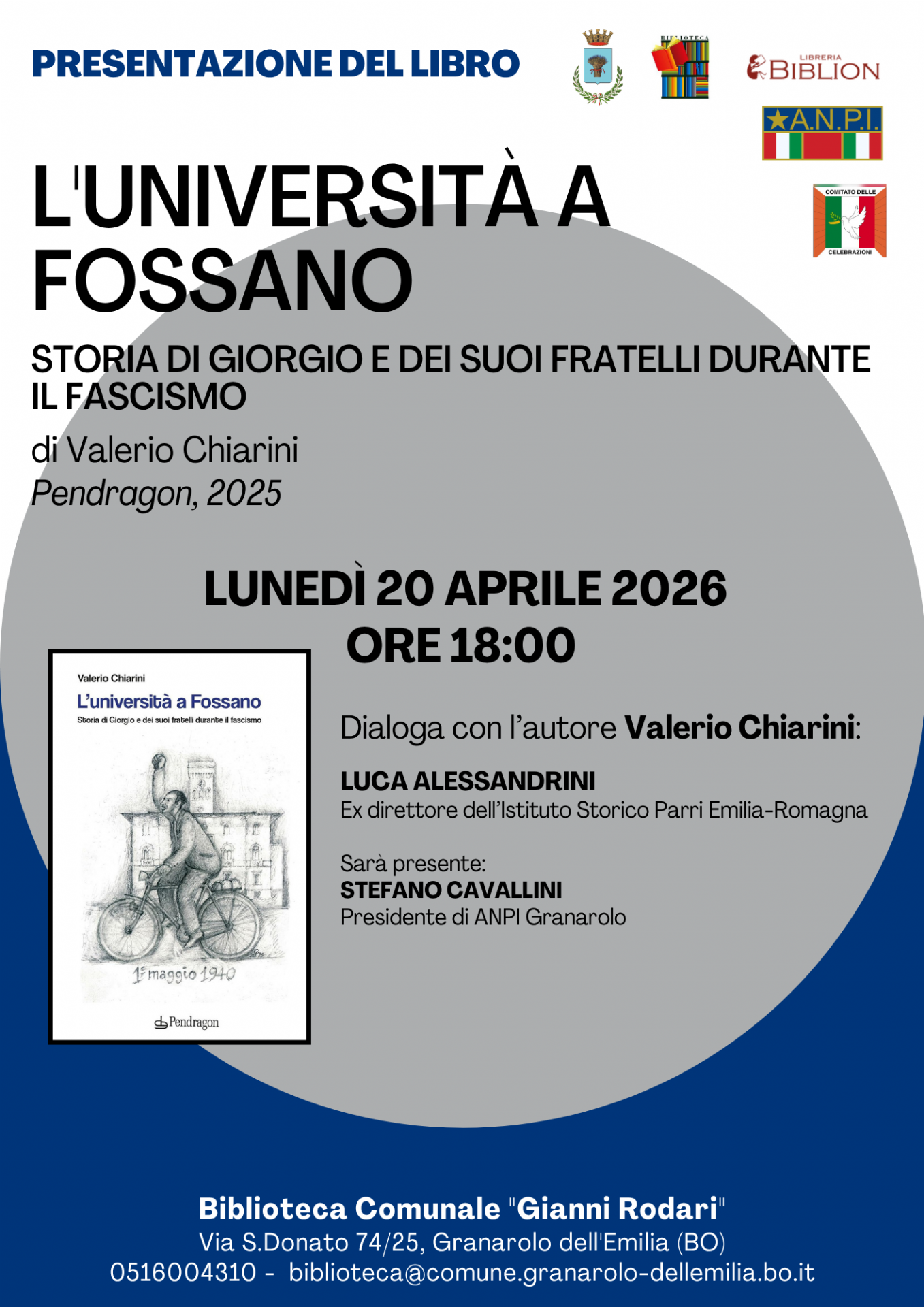 Lunedì 20 aprile 2026 alle ore 18.00 sarà presentato il libro “L’università a Fossano. Storia di Giorgio e dei suoi fratelli durante il fascismo” di Valerio Chiarini, pubblicato da Pendragon.