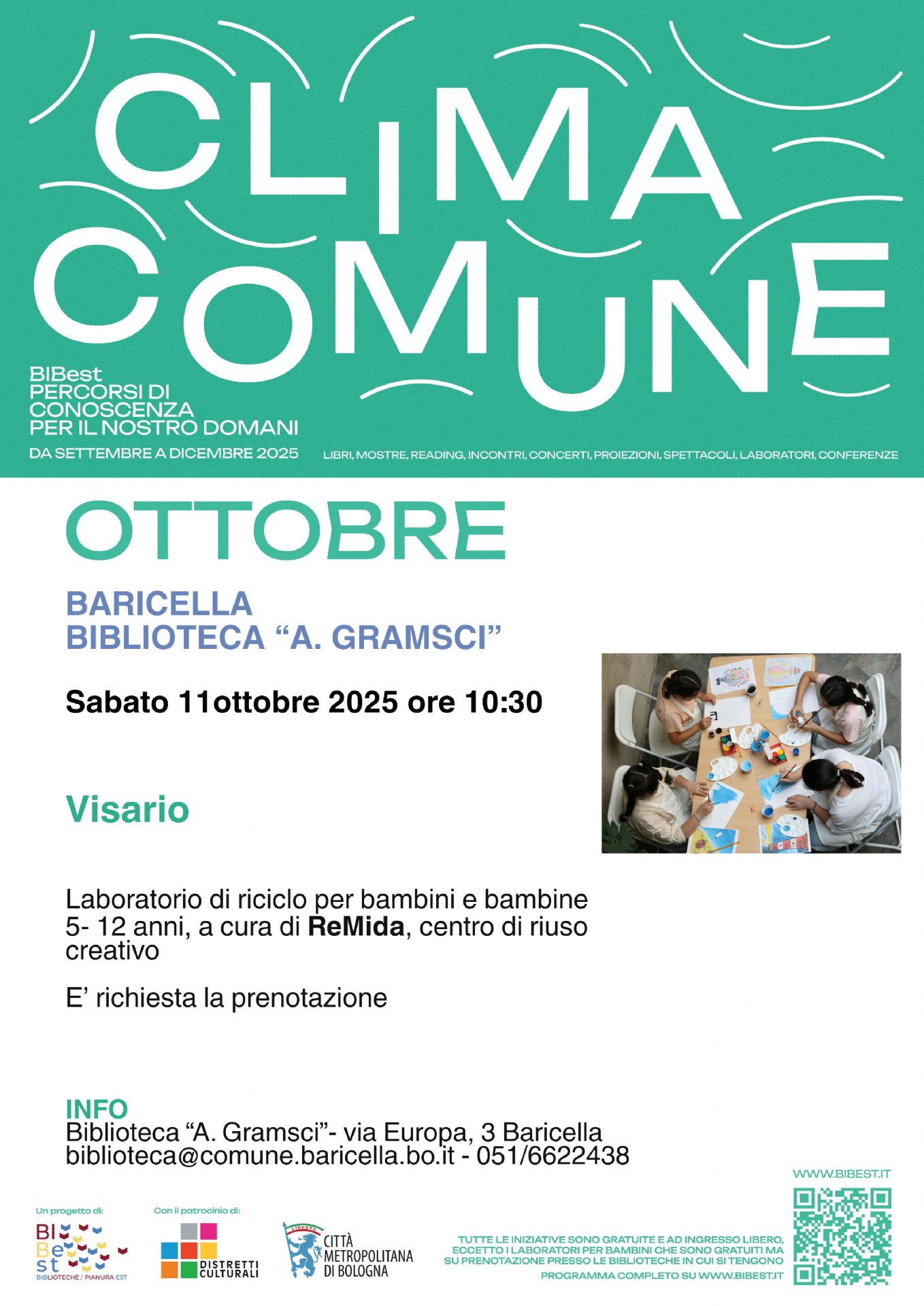 La Biblioteca Comunale “A. Gramsci”, nell’ambito della rassegna “Clima Comune” promossa da BiBest, è lieta di invitare bambini e famiglie a partecipare al laboratorio creativo: