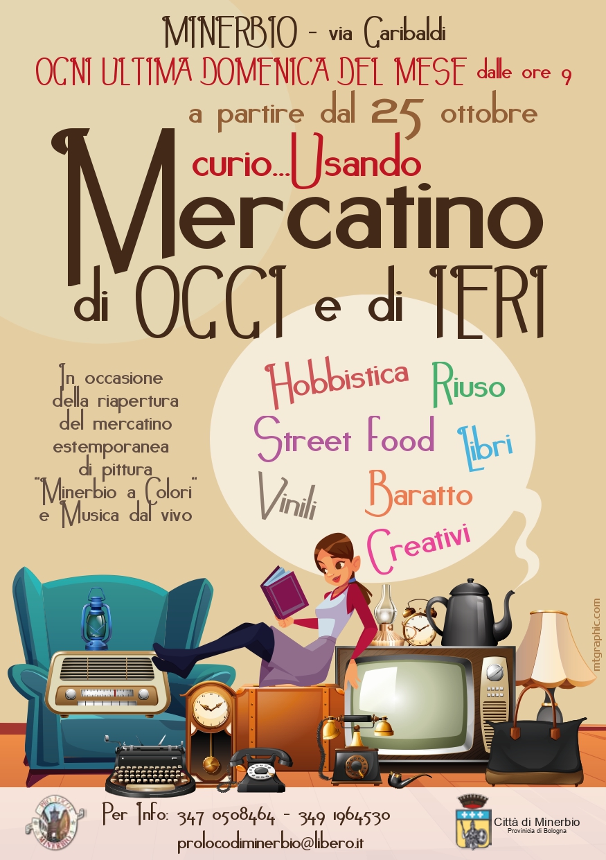 In occasione della riapertura del mercatino, domenica 25 ottobre vi sarà la mostra estemporanea di pittura "Minerbio a colori" e musica dal vivo.