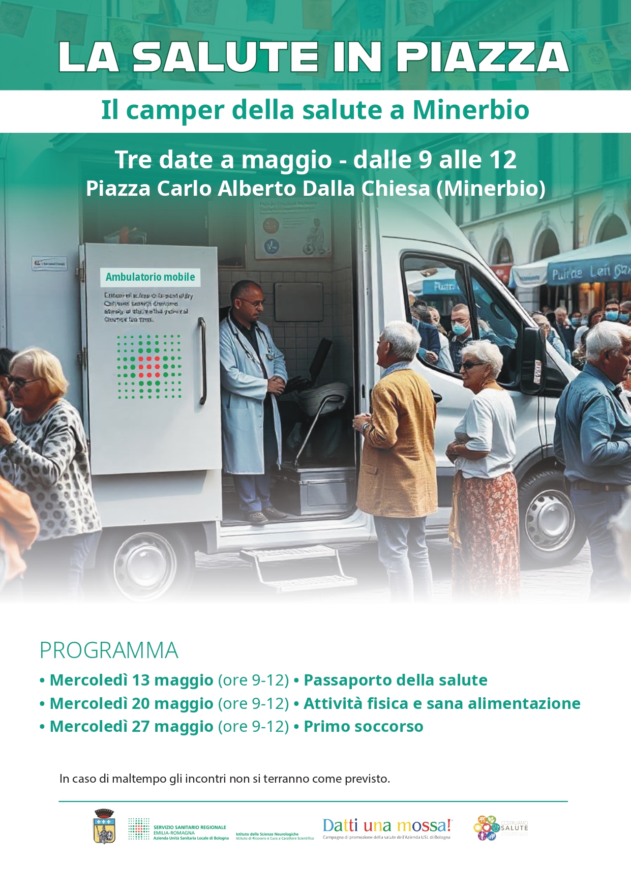 Il Camper della Salute farà tappa a Minerbio mercoledì 13 maggio, con l’incontro dedicato al “Passaporto della salute”, un percorso di valutazione e orientamento rivolto alla cittadinanza per promuovere la prevenzione e il monitoraggio del proprio stato di salute.