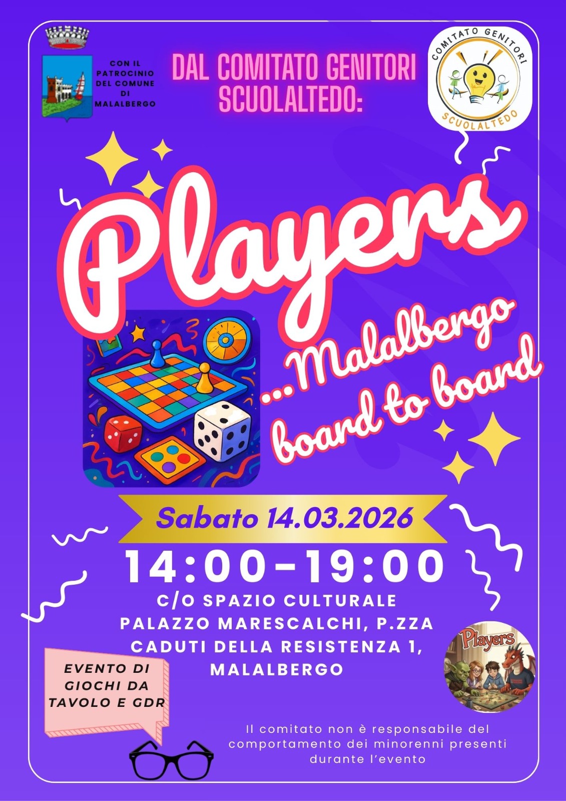 Evento di giochi da tavolo e giochi di ruolo presso il nuovo Spazio Culturale Palazzo Marescalchi, P.zza Caduti della Resistenza 1 a Malalbergo