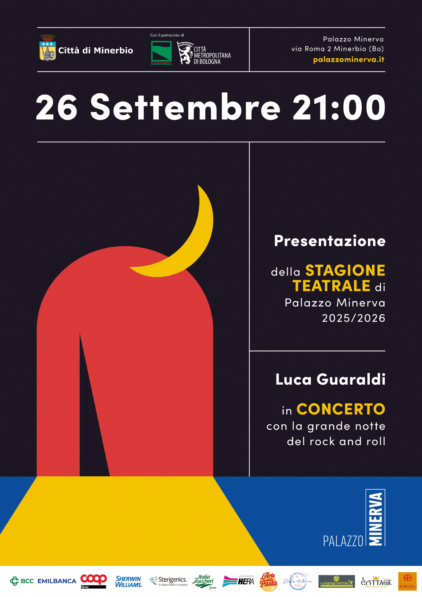Venerdì 26 settembre 2025 alle ore 21.00 si terrà la presentazione della stagione teatrale 2025/2026 di Palazzo Minerva.