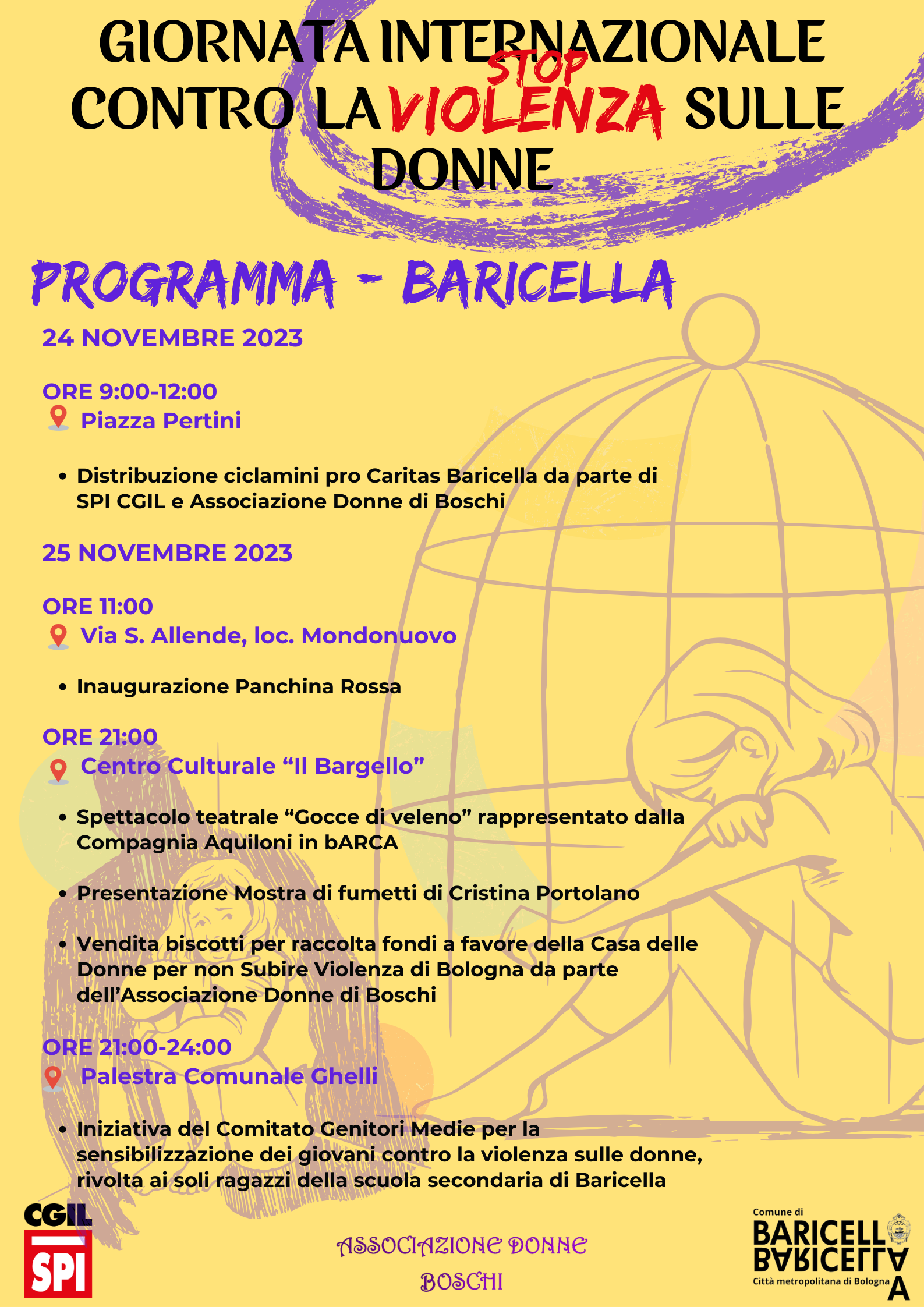 Per focalizzare tutta l'attenzione pubblica su questo tema ancora di grande attualità e urgenza, per contrastare qualsiasi tipo di violenza, abuso e discriminazione perpetrata quotidianamente e ogni giorno sulle donne, il Comune di Baricella, insieme alle associazioni del territorio, ha messo in campo una serie di iniziative rivolte a tutta la comunità. Di seguito e in calce il Programma.