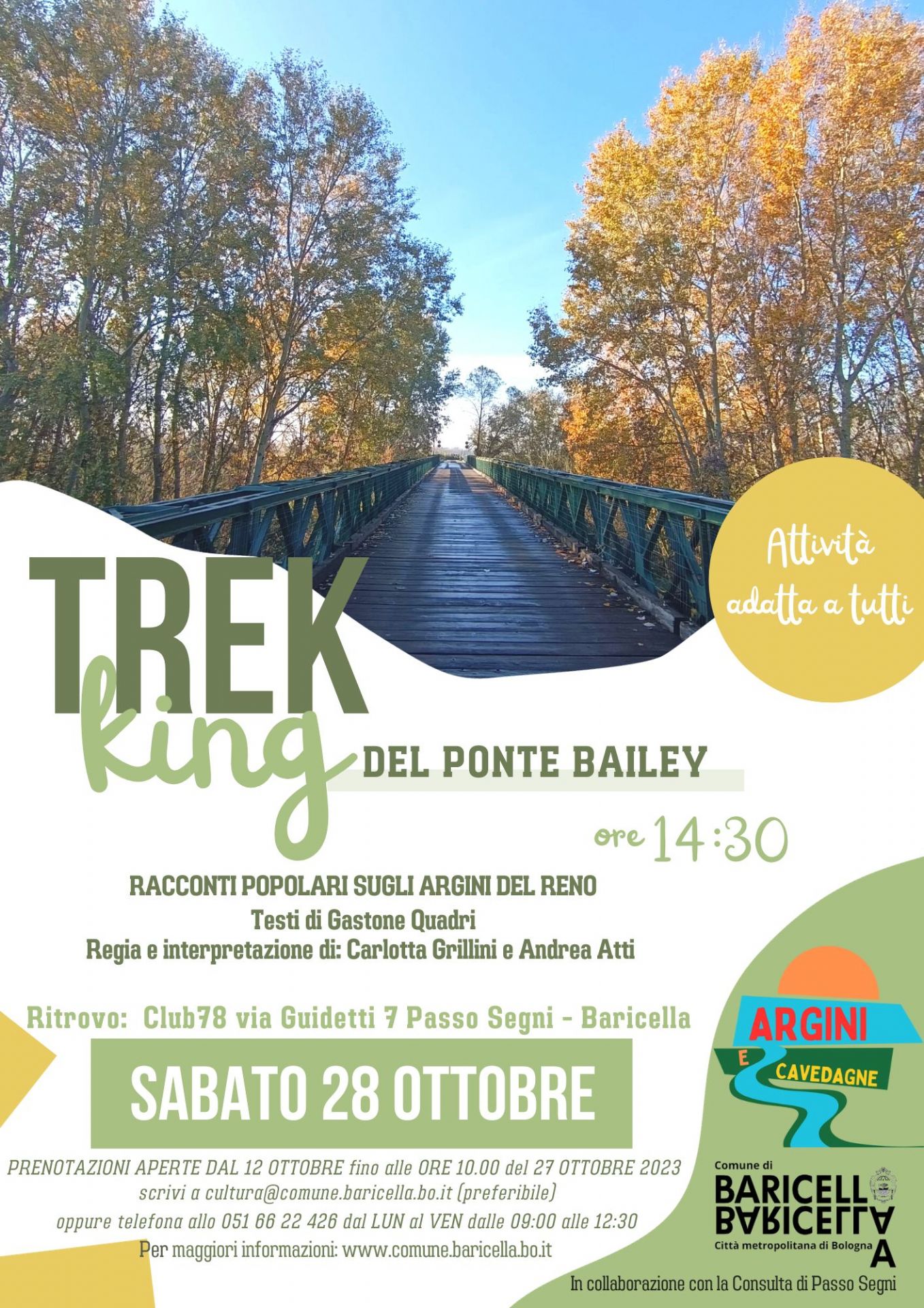 Una camminata tra la natura di Passo Segni, il piccolo borgo che per i baricellesi sorge “al di là del Reno” e che un tempo era raggiungibile solo con la chiatta del Sig. Bastiàn. Nel 1950 fu costruito sul Reno il caratteristico Ponte Bailey in legno e acciaio a elementi modulari che, progettato per scopi militari, è il più lungo in Europa ancora oggi in funzione e che collega tutt'ora Bologna al territorio ferrarese. Passava proprio qui un tempo il confine tra lo Stato Pontificio e il Ducato di Ferrara.
