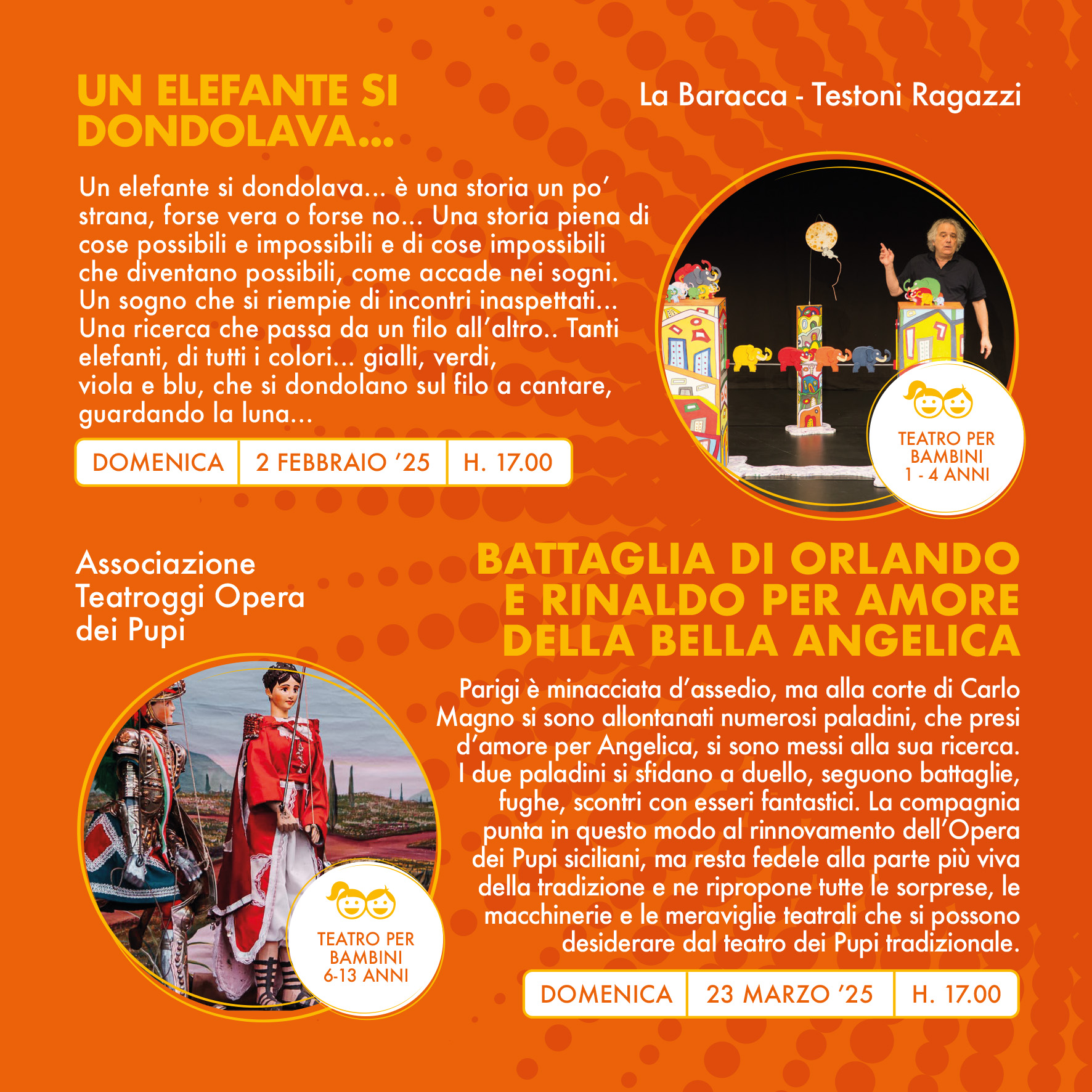 € 15 (dai 2 anni) Abbonamento 4 spettacoli