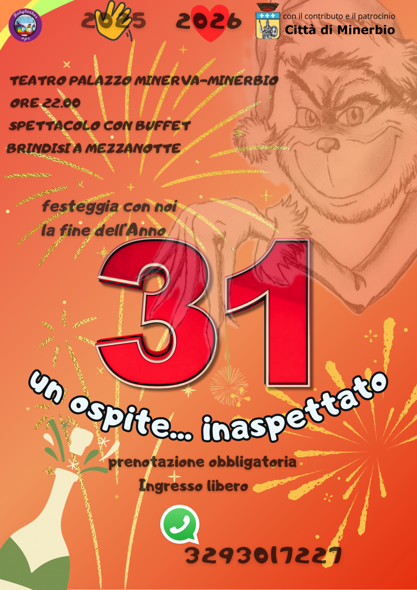 Il 31 dicembre, a partire dalle ore 22:00, il Teatro Palazzo Minerva ospiterà lo spettacolo “Un ospite inaspettato”, una serata speciale pensata per festeggiare insieme l’arrivo del nuovo anno.