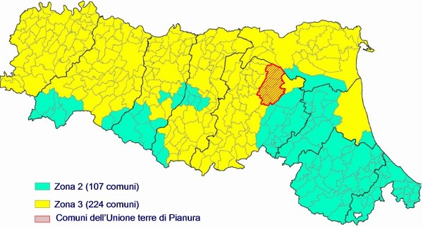 Il territorio dell’Unione è caratterizzato da una pericolosità sismica classificabile come “bassa” ai sensi delle recenti disposizioni regionali DGR 1164 del 23/07/2018 ossia “zona 3” avente accelerazioni massime ag, di base attese, con probabilità di superamento pari al 10% in 50 anni, comprese nell’intervallo 0,05g < ag ≤ 0,15g (ai sensi del OPCM 3519/2006).