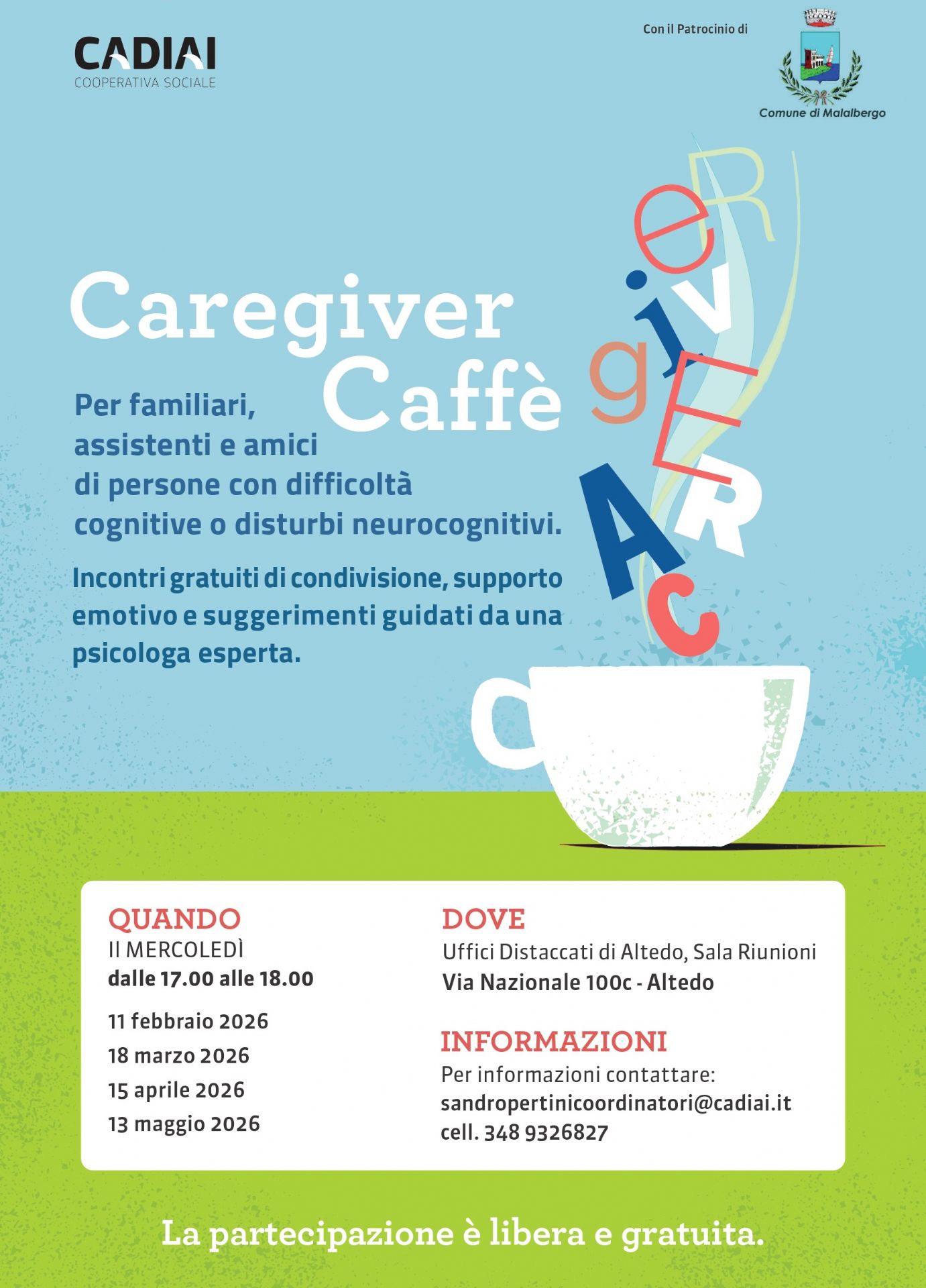 Caregiver Caffè. Incontri gratuiti di info-formazione per familiari, assistenti familiari e amici di persone con difficoltà cognitive e disturbi neuro-cognitivi.