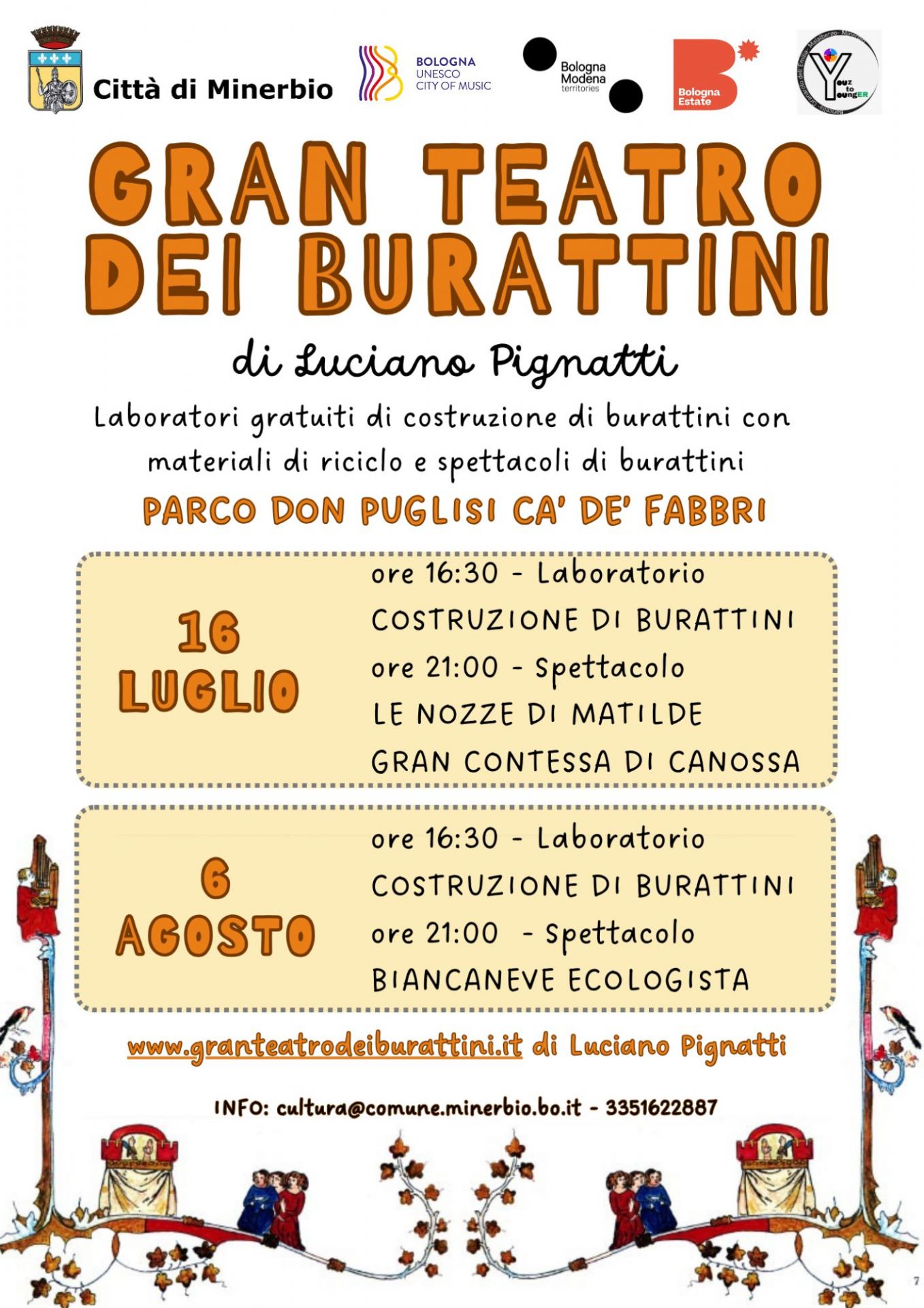 il Gran Teatro dei Burattini fa parte di Bologna Estate 2025, il cartellone di attività promosso e coordinato dal Comune di Bologna e dalla Città metropolitana di Bologna - Territorio Turistico Bologna-Modena.