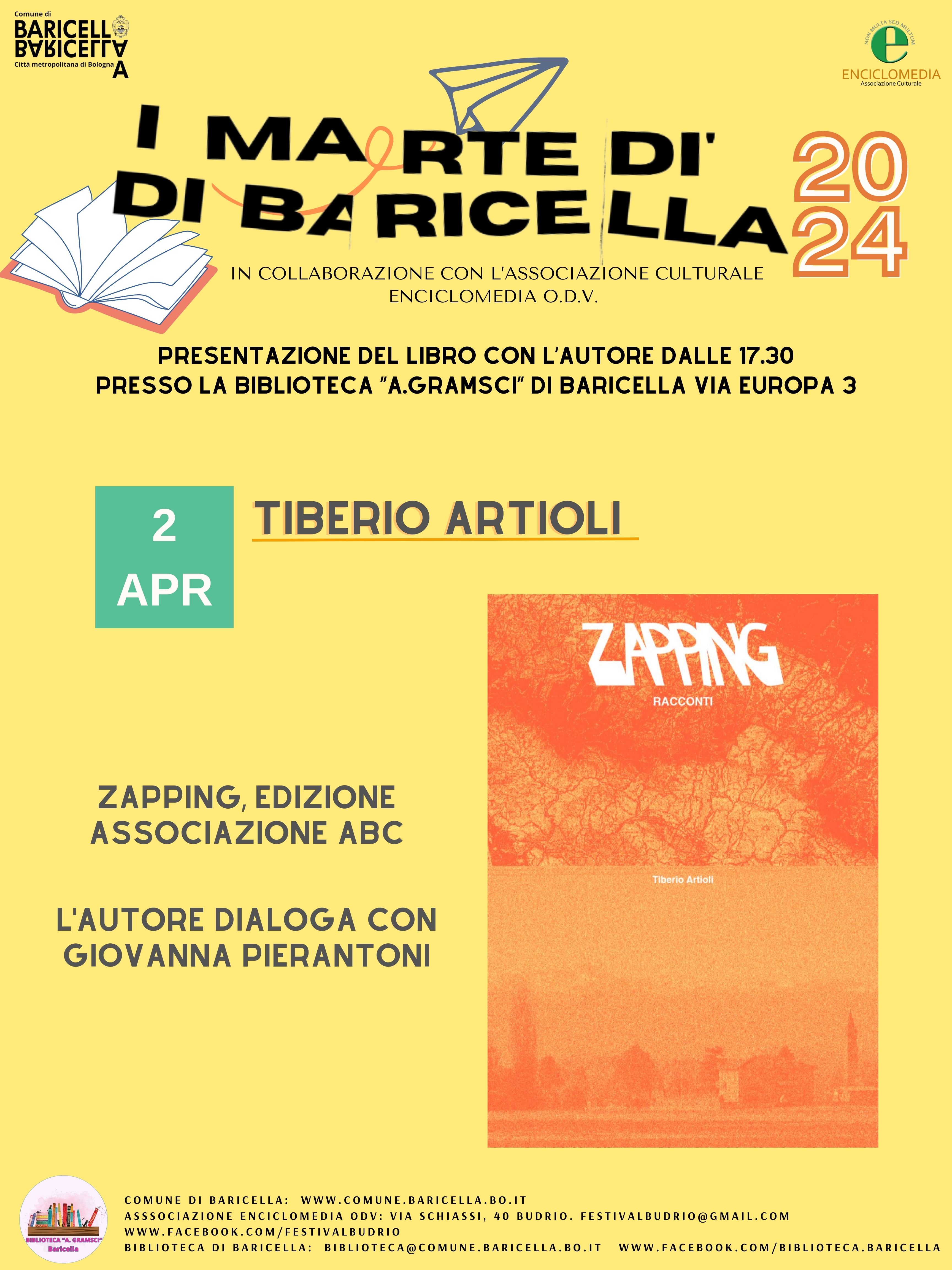 - Martedì 2 Aprile Tiberio Artioli presenta “Zapping”, Edizioni Arte Stampa 2023