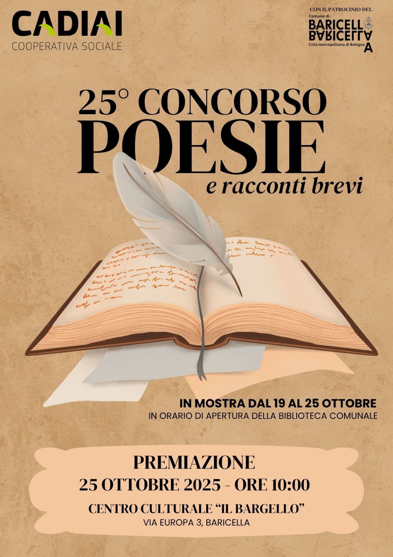 Vi aspettiamo numerosi in Sala Europa, presso il Centro Culturale “Il Bargello”, in Via Europa 3, Baricella.