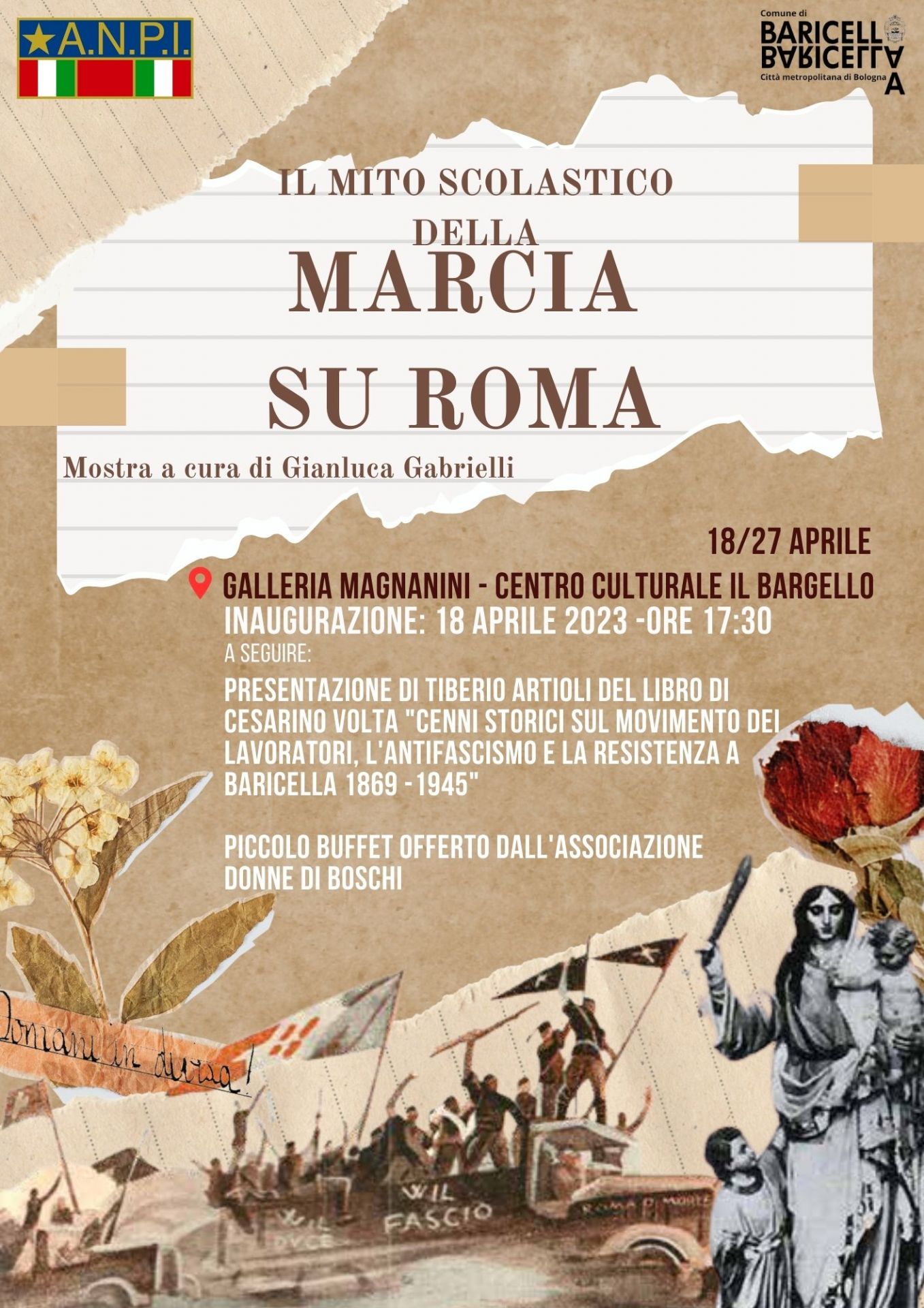 Nell'ambito del ricco programma di iniziative per celebrare il Giorno della Liberazione dell'Italia dal Nazifascismo, vi aspettiamo Martedì 18 Aprile alle ore 17:30 al Centro Culturale il Bargello (Via Europa 3, Baricella) per l'inaugurazione della mostra "Il mito scolastico della Marcia su Roma" a cura di Gianluca Gabrielli, storico e insegnante.