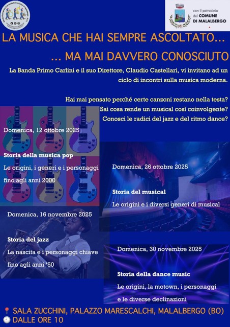 Ciclo di incontri sulla musica moderna a cura della Banda Primo Carlini di Malalbergo presso Sala Zucchini a palazzo Marescalchi.
