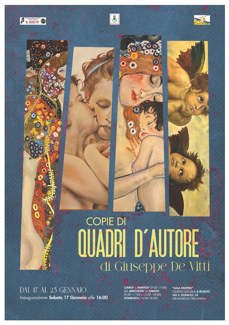 Dal 17 al 25 gennaio, il Centro Sociale Il Roseto di Granarolo dell’Emilia ospiterà la mostra “Copie di quadri d’autore” di Giuseppe De Vitti, un’esposizione dedicata alla reinterpretazione pittorica di grandi capolavori della storia dell’arte.