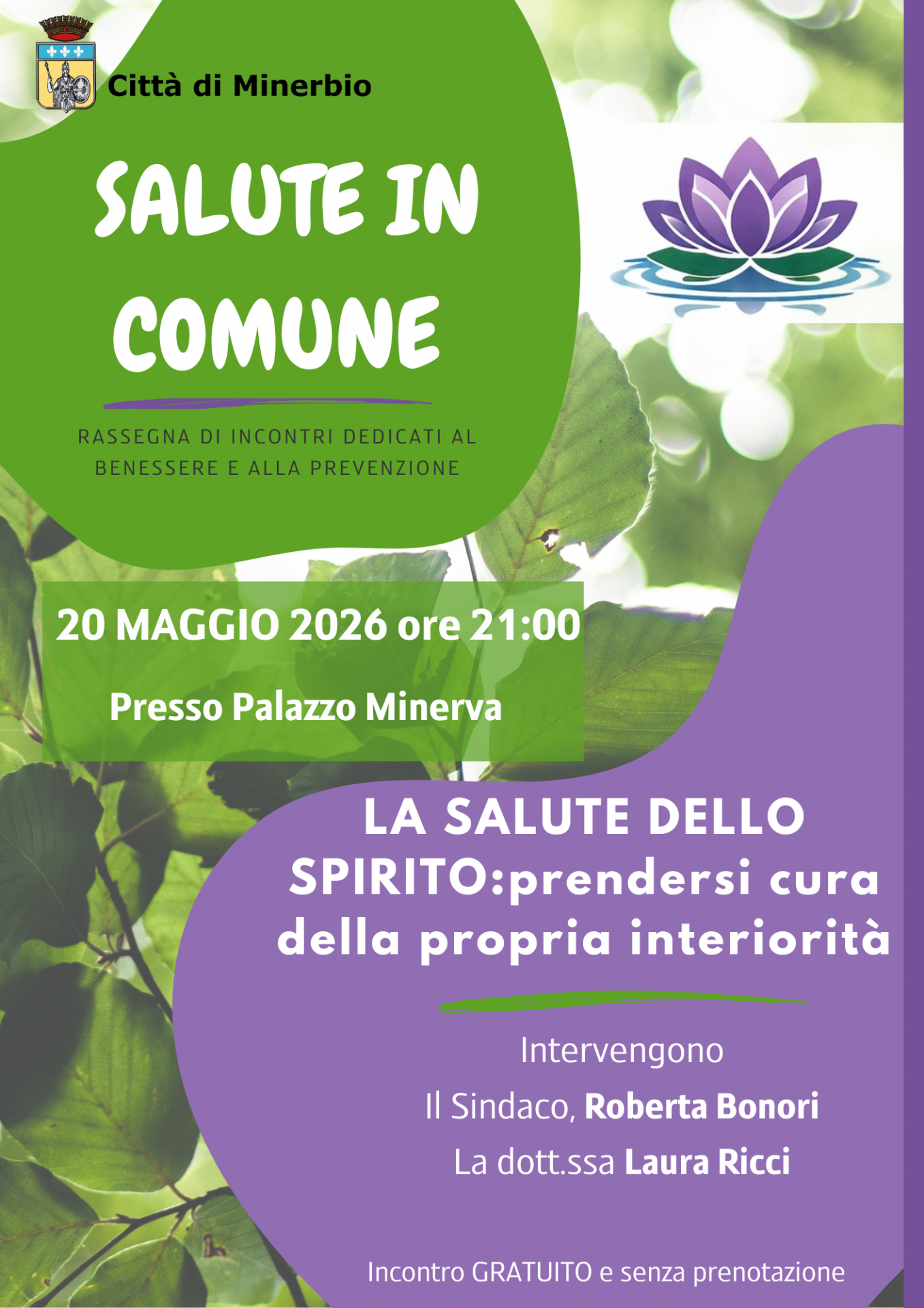 Mercoledì 20 maggio ore 21.00 - La salute dello spirito: prendersi cura della propria interiorità