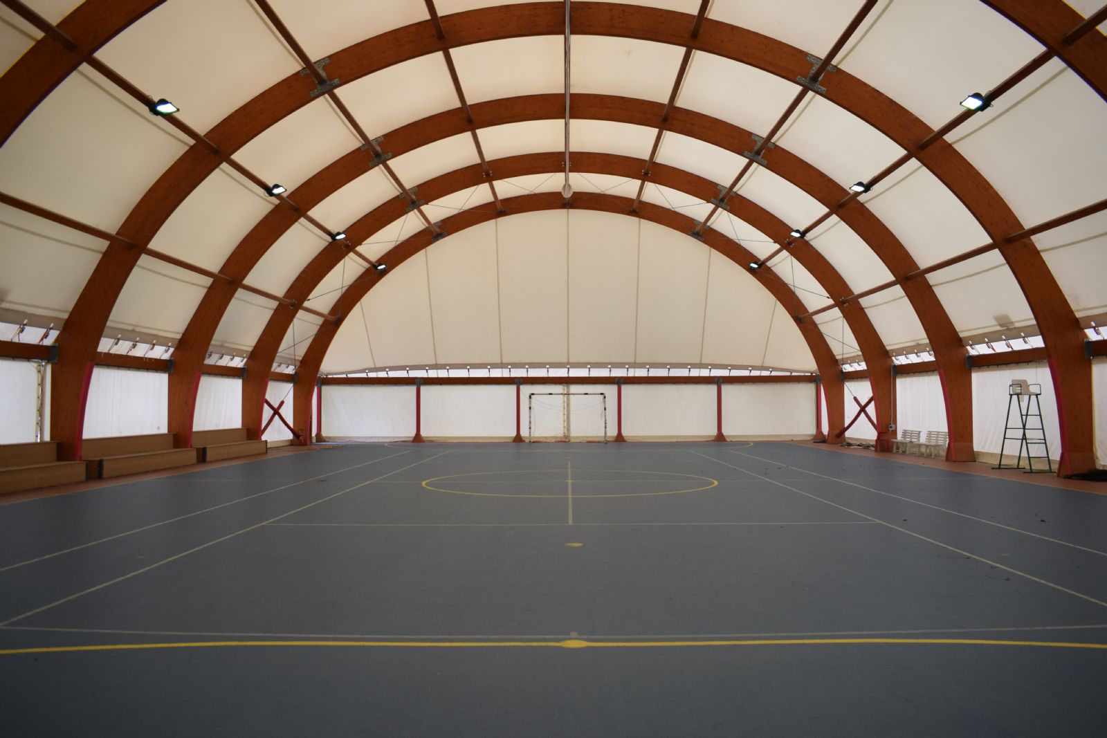 La struttura coperta è ottimizzata per il gioco del calcio a 5 oltre che del tennis. E' dotato di spogliatoi.