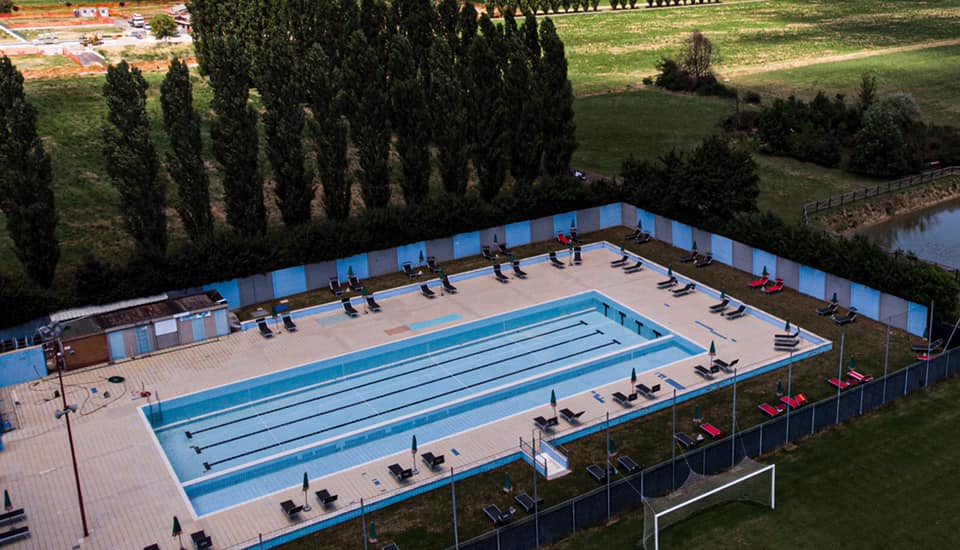 L'impianto è dotato di due vasche scoperte (grande: m. 33 x 18 con profondità da 1,50 a 1,90 m.; piccola: m. 33 x 2,5 con profondità da 0,60 a 0,80 m.) e del Blupool, un dispositivo medicale che permette l’accesso alla piscina in modo sicuro, confortevole e funzionale alle persone con capacità motoria ridotta. Due operatori assistono, a richiesta, le persone che ne abbiano necessità.